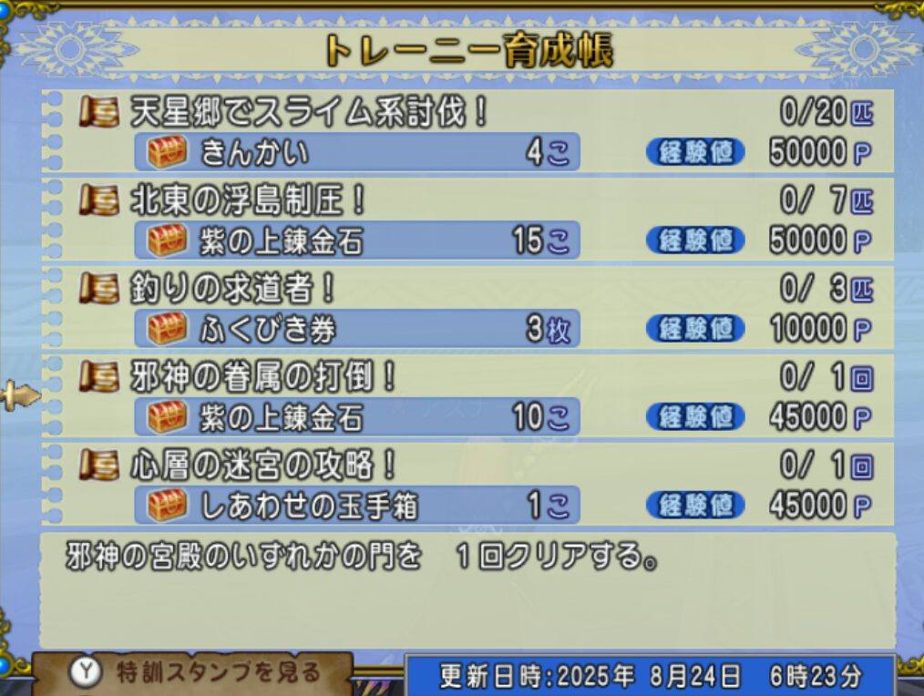 今週( 8/24)のキタエルさんとバケンズさん 週課 Twitter Facebook はてブ Pocket LINE コピー 2025.08.24 人気ブログランキングへ 2つ同時は、無理だからコツコツ 経験値目的♪ 2つ同時は、無理だからコツコツ 経験値目的♪ 対抗競技 バトルトリニティ 人気ブログランキングへ ポチっと応援よろしくね↓